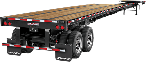 Standard open trailer for general freight (construction materials, machinery, pallets).
